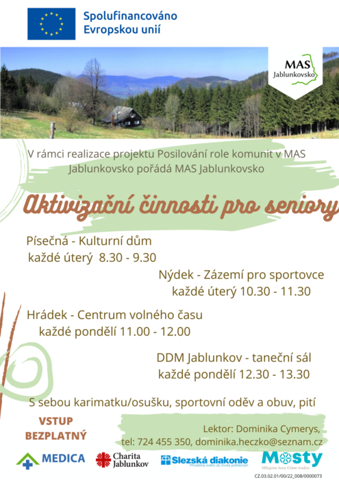 Aktivizační činnosti pro seniory - CVIČENÍ V OBCÍCH PÍSEČNÁ, HRÁDEK, NÝDEK A JABLUNKOV
