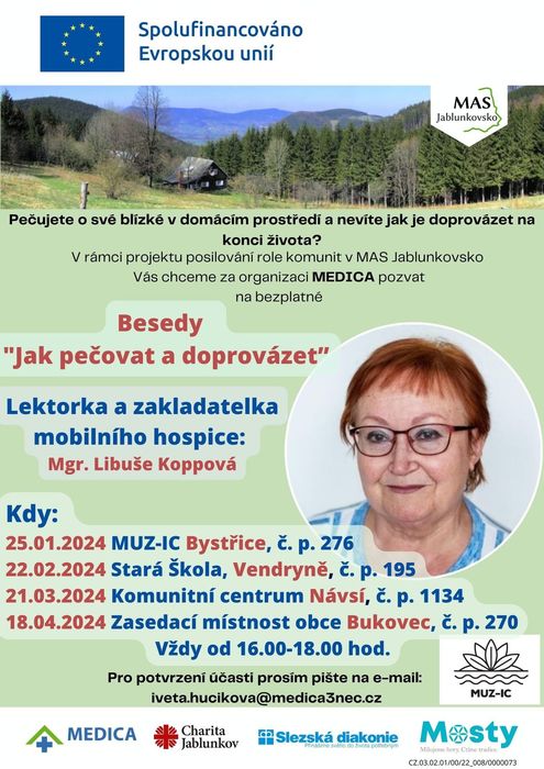 Ve čtvrtek 22. února 2024 Vás zveme na další besedu zaměřenou na téma "Jak pečovat a doprovázet". Tato beseda se tentokrát bude konat ve Vendryni - Stará škola č. p. 195, od 16 hodin.