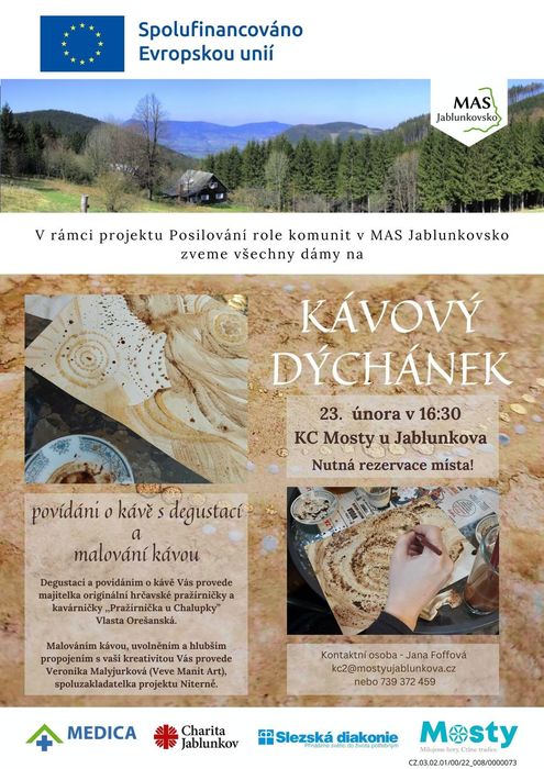 V pátek 23. 2. srdečně zveme na pohodové odpoledne plné voňavé kávy Počet míst na akci je omezen, takže pokud máte zájem, je potřeba si místo rezervovat předem.