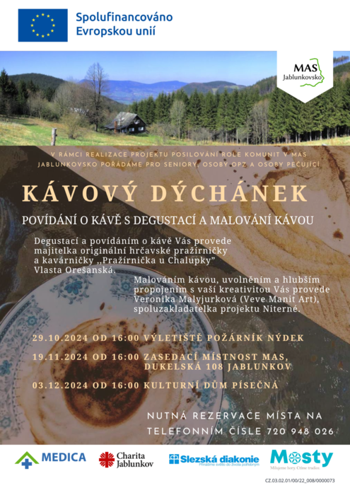 Degustací a povídáním o kávě Vás bude provázet majitelka hrčavské pražírny paní Vlasta Orešanská a malováním a propojením s Vaší kreativitou Vás provede paní Veronika Malyjurková.
