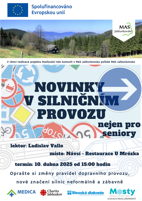 V rámci projektu Posilování role komunit v MAS Jablunkovsko Vás zveme na další zajímavou přednášku. Tentokrát se zaměříme na Novinky v silničním provozu.