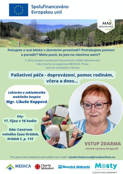 V rámci projektu "Posilování role komunit v MAS Jablunkovsko" Vás zveme na další workshop týkající se tématu "Paliativní péče".